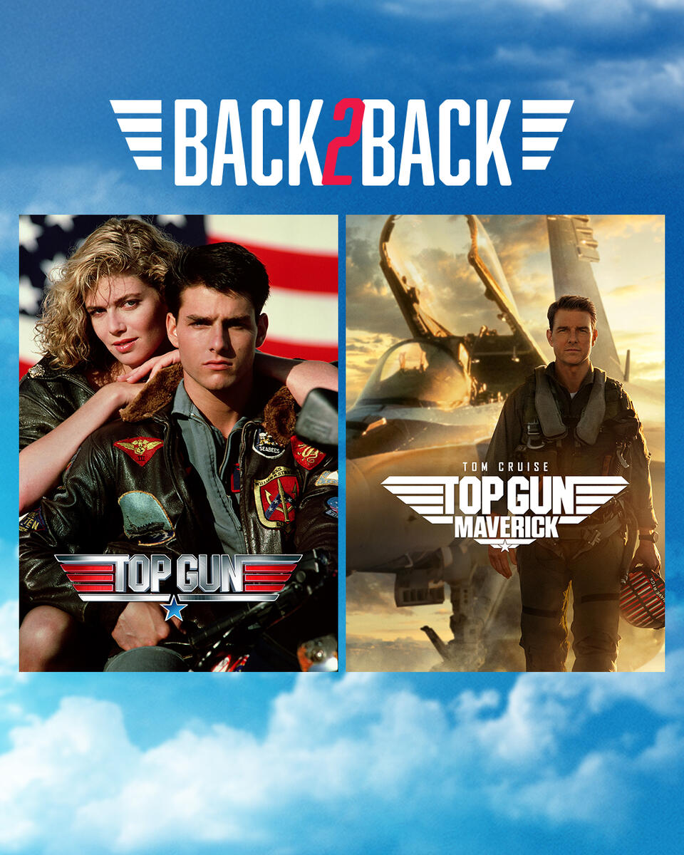 Herbeleef de halsbrekende toeren van de jonge piloten Maverick (Tom Cruise) en Iceman (Val Kilmer) in Top Gun en Mavericks comeback als vlieginstructuur van onder andere Icemans zoon in Top Gun Maverick